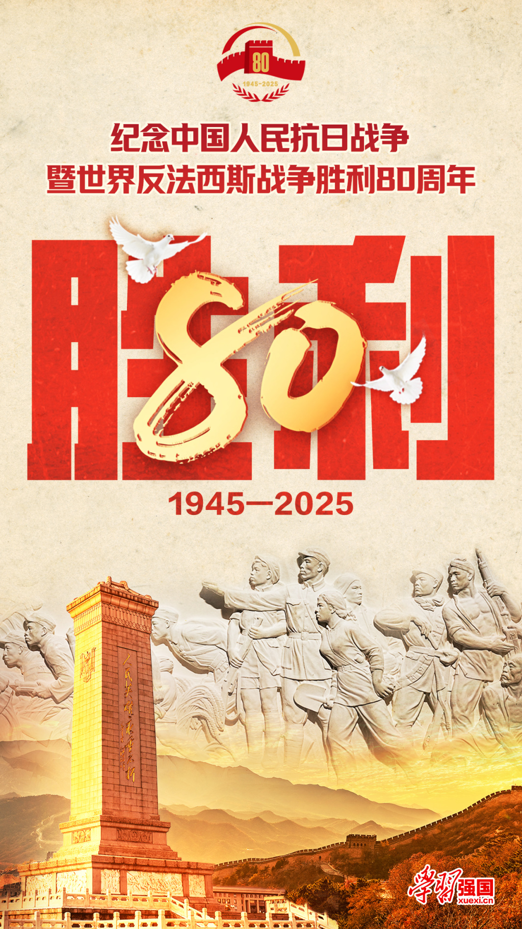 强国海报:纪念中国人民抗日战争胜利暨世界反法西斯战争胜利80周年