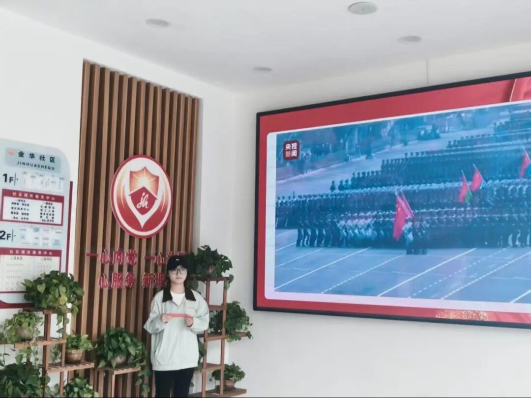 活动接近尾声时,全体人员在主持人的带领下起立,高声齐唱《歌唱祖国》。熟悉的旋律响彻会场,“五星红旗迎风飘扬,胜利歌声多么响亮”的歌声激荡人心,青年学子与社区居民手挥国旗,用嘹亮的歌声表达对祖国的热爱与祝福。这一刻,历史的厚重与当下的豪情交织,展现出新时代青年传承红色基因、担当时代使命的坚定信念。