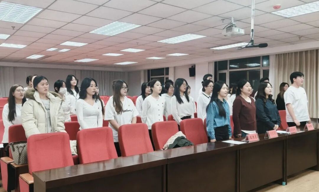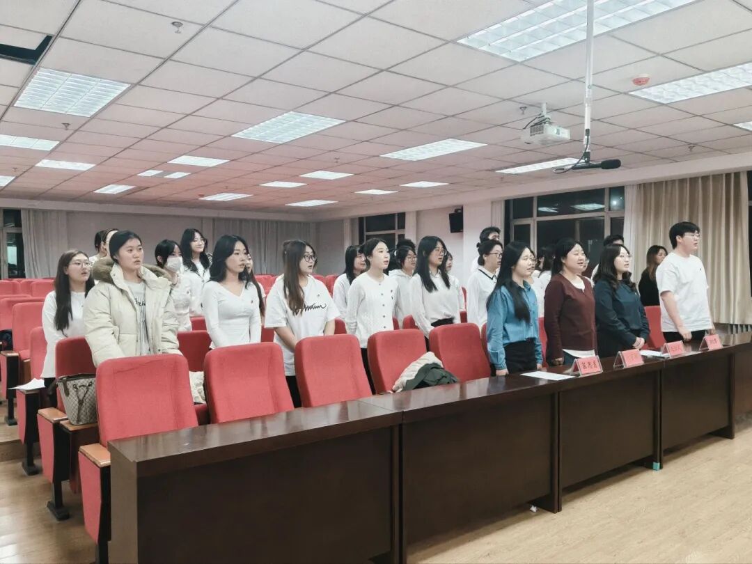 11月20日19:00,外国语学院2025年秋季学期新团员入团仪式庄严于电力大楼401举行。伴随着激昂的《义勇军进行曲》,全体人员肃立齐唱国歌,仪式正式拉开帷幕。