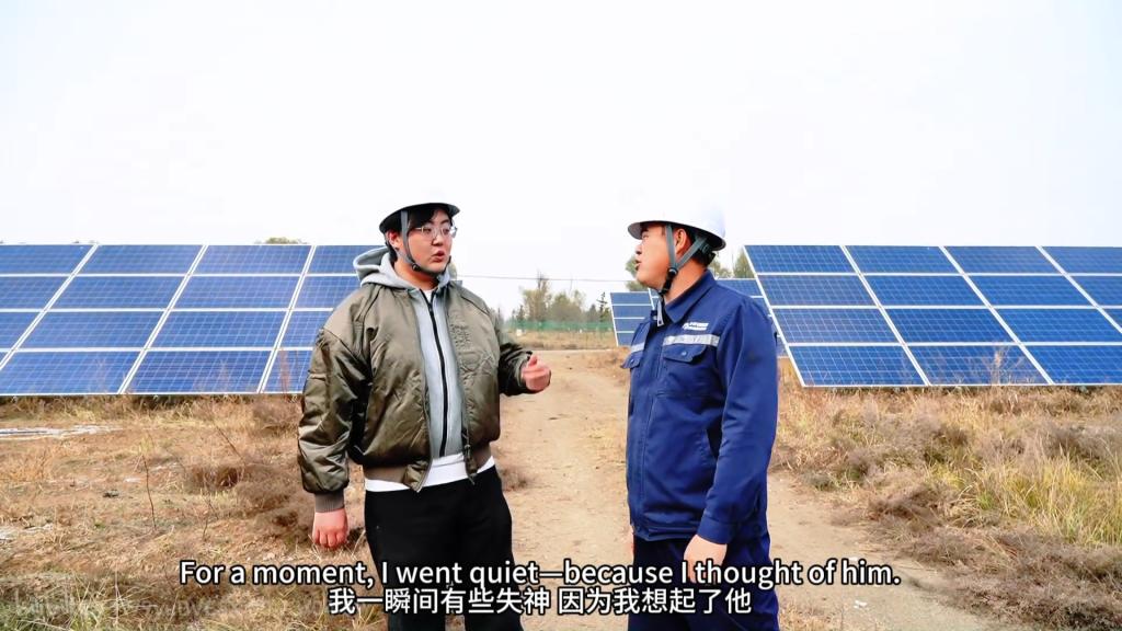 作品以跨文化交际理论作为切入点,在呈现光伏产业发展全貌的同时,也融入了这位自称为光伏行业“小螺丝钉”的从业者的奉献精神。他舍小家顾大家,在年复一年、日复一日的坚守中始终充满希望:当他自豪地拿着手机给孩子展示自己的工作成果时,眼中闪烁着骄傲的光芒;当他向我们讲述光伏产业的发展故事时,语气里满是激动;当他得知我国的光伏技术已走向世界、为多个国家提供支持时,内心的自豪之情更是溢于言表。